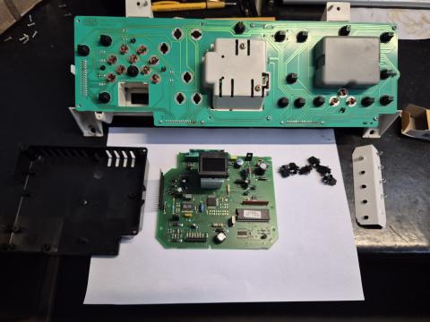 De dasboard verlichting zit onder vast met 2 plastik klipschroeven als deze verwijder zijn kan het display er uit getrokken worden uit de bovenst pennen deze zitten goed geklemd maar met een flinke ruk moet dat lukken.