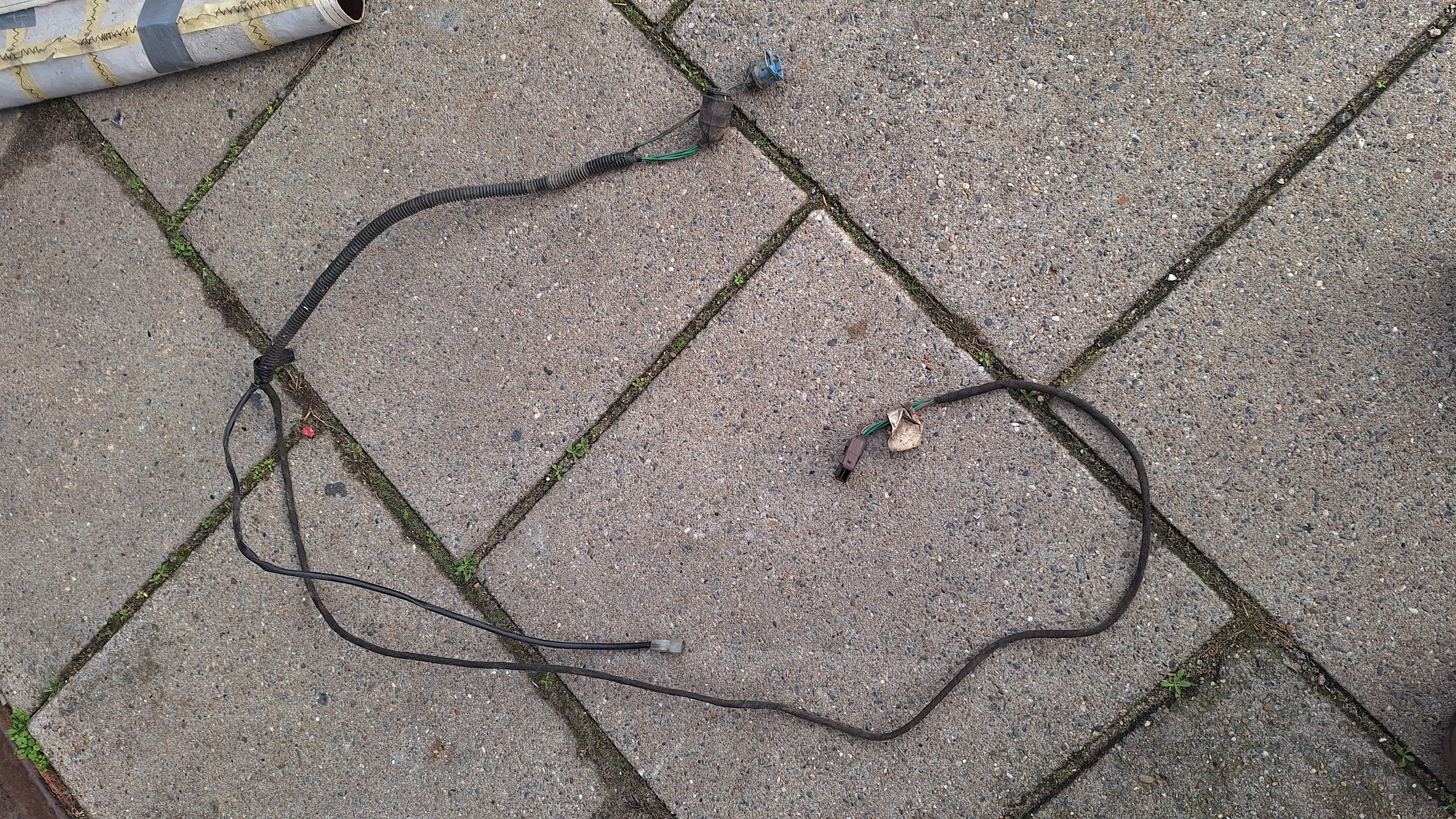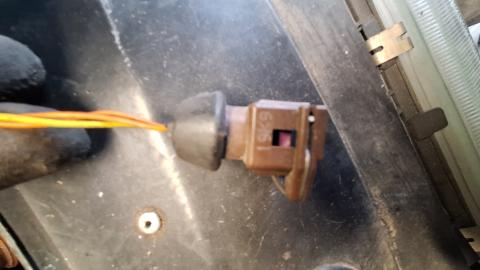 Die 2polige is loos. Wordt naar voren geleid langs het plaatwerk. Denk dat ie voor de sproeiermoter van de koplampen is.