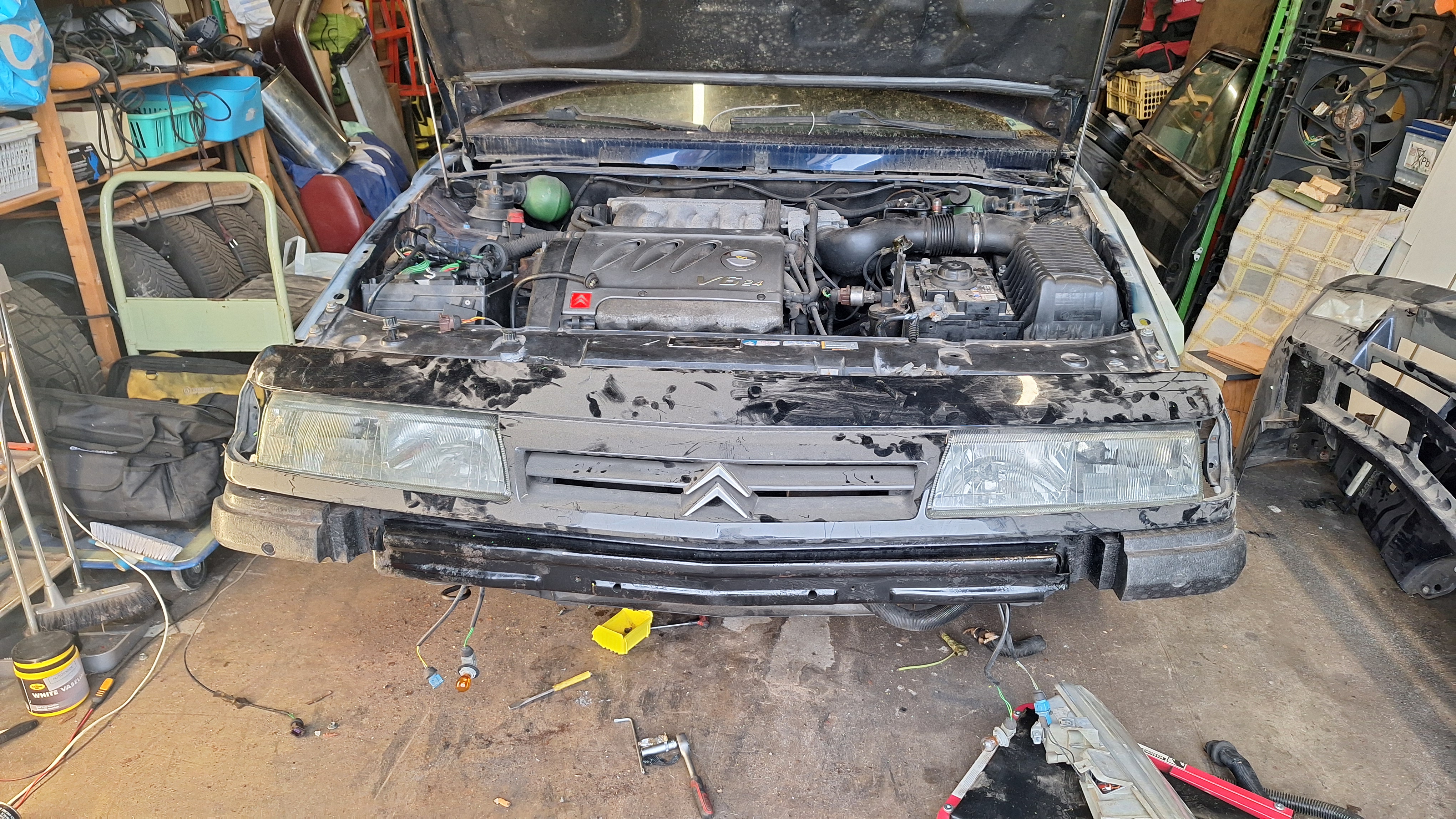 Carterpan moet er nieuw onder, de vorige eigenaar had wat zaken eraf gehaald, zoals spiegels, en blijkbaar ook in de motorruimte..