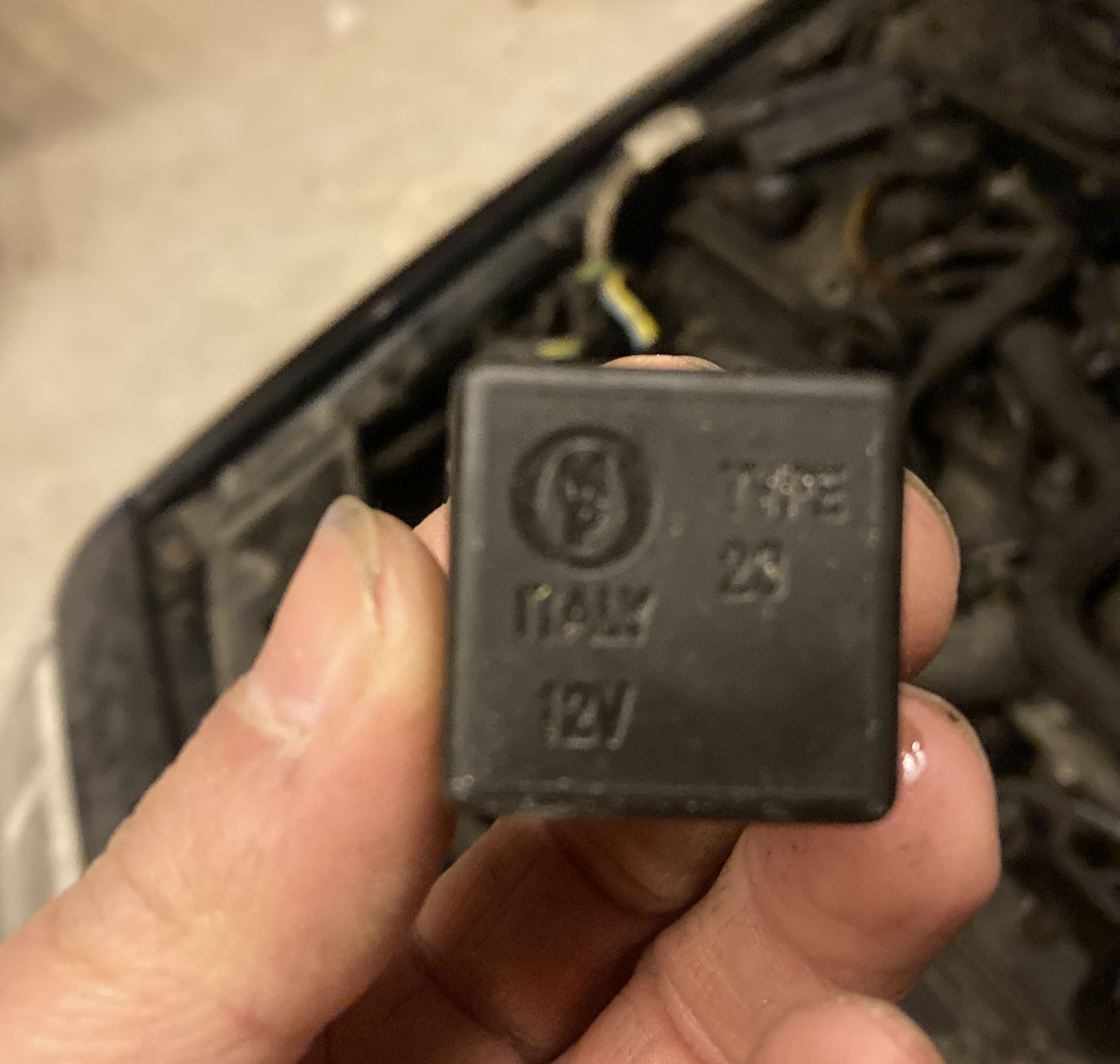En het missende relais moet dezelfde zijn als de twee andere op de foto. Tenminste, ik zie aan de stekker op de achtergrond dat dit de bestuurderszijde is, toch?