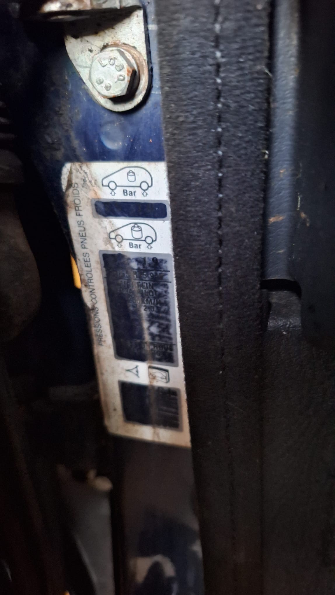 Hoort dat niet op het labeltje met de bandenspanningen te staan bij zo'n late XM?