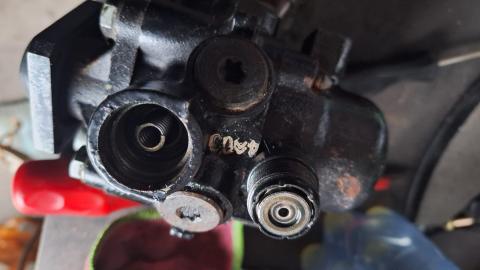De HD pomp lijkt alleen te lekken bij de afdichting op de voorkant, die niet loskan vanwege de dynamo.