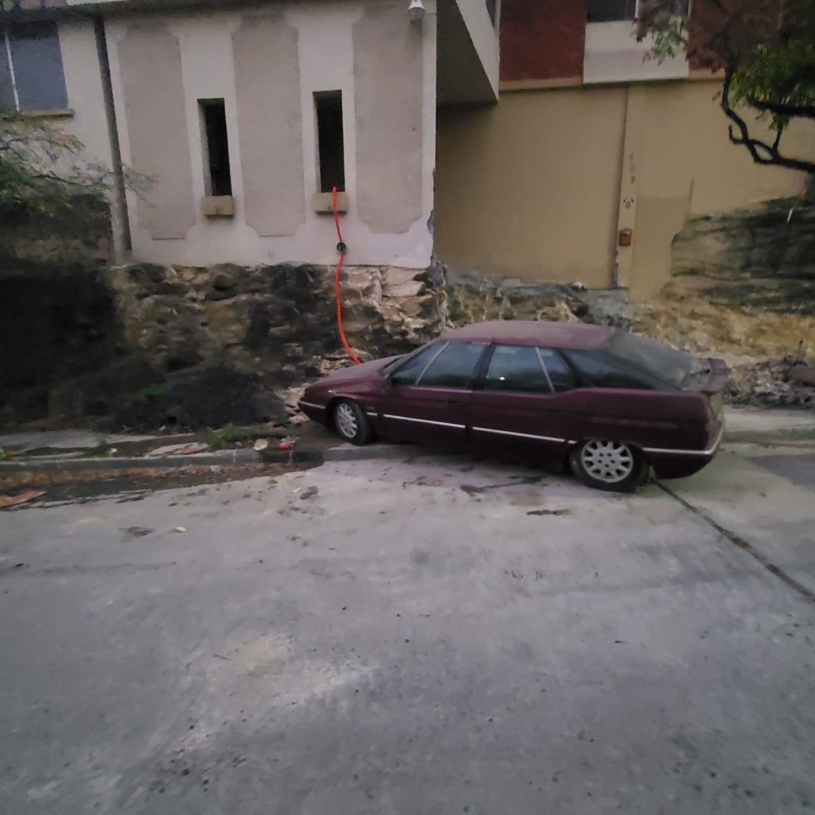 Ik dacht, ik zet hem in neutraal en duw hem wat verder de straat in. Ik zet mijn vriendin achter het stuur en ik geef de XM een duwtje. Het gaat hier wat berg af en ik zie de XM zo richting de Mercedes rijden die zo'n 30m verder stond geparkeerd. Ik hoor mijn vriendin schreeuwen en ik begon nog harder te roepen. De XM ging een cm langs de Mercedes af en crashte aan de overkant tegen de gevel van een huis. De hand/voetrem had dit kunnen voorkomen maar die wist ze niet zitten. Dat was ik haar vergeten te vertellen. Dit gebeurde allemaal om 05h30 deze morgen.
