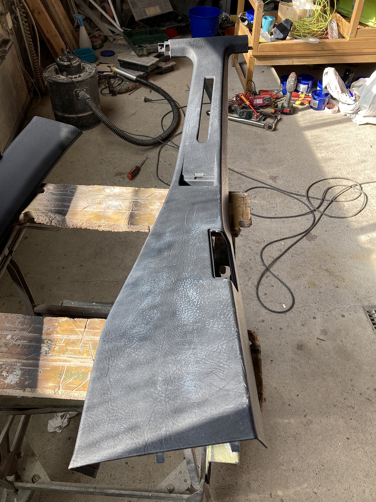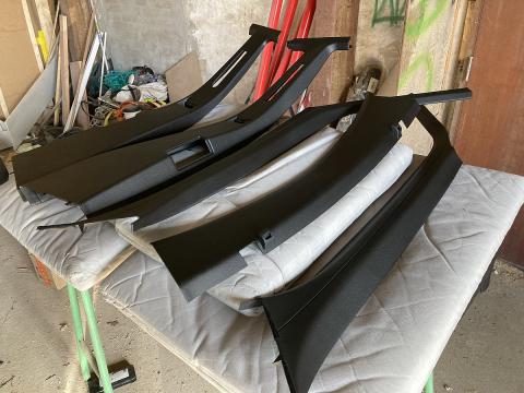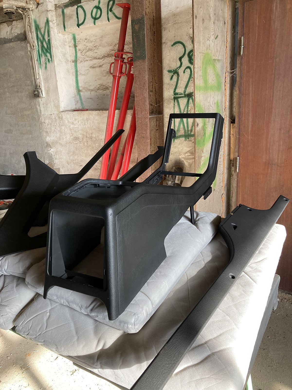 Ik heb voor nu dus alle plastic interieurdelen aangepakt met een lichte structuur erop zoals bij de deurstijlen, dus niet het hele dashboard en de deurpanelen (dat dashboard is volgens mij bekleed met een soort vinyl??). Wel voor de mooi de instaplijsten en bijv. de achterbak trim (daar waar de achterklep invalt zeg maar). Ik moet nog de delen rondom de achterklep zelf doen, maar omdat dat een plek is die losstaat van de rest komt dat later wel.