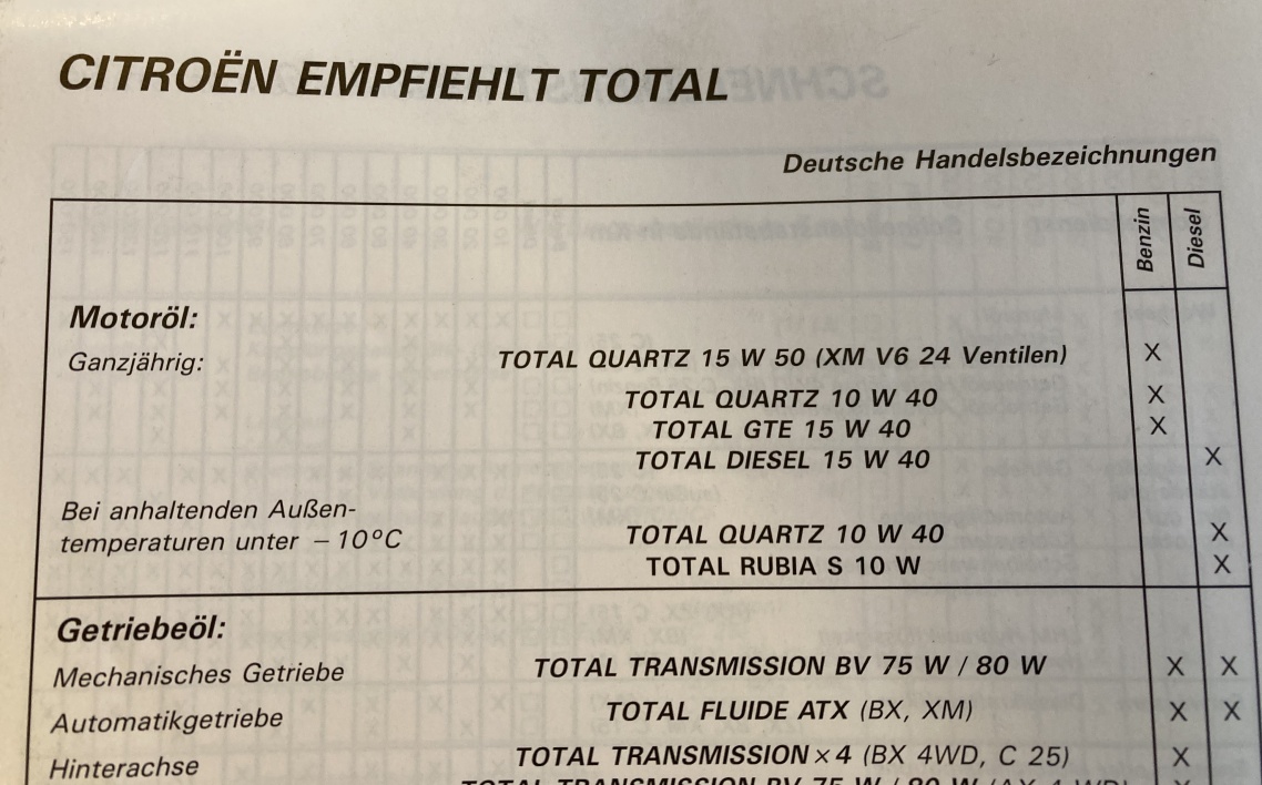 Toch laat het onderhoudsboekje ook die 15W50 zien specifiek voor deze motor. Vreemd toch? Dacht dat ze toen al beter wisten bij Citroen.