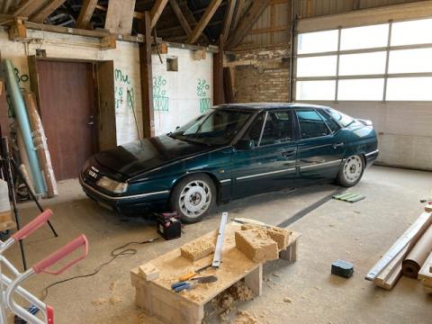Oh ja, en als jullie denken, wat liggen daar allemaal voor een klusspullen op de grond? Dat is omdat ik een deel van de schuur aan het verbouwen ben. Uiteindelijk maak ik ook nog een verwarmde garagebox, zodat de XM en wat andere machines daarin kunnen staan en ik niet in de vrieskou hoef te sleutelen. En ook spuitwerk is niet praktisch bij lage temperaturen :)