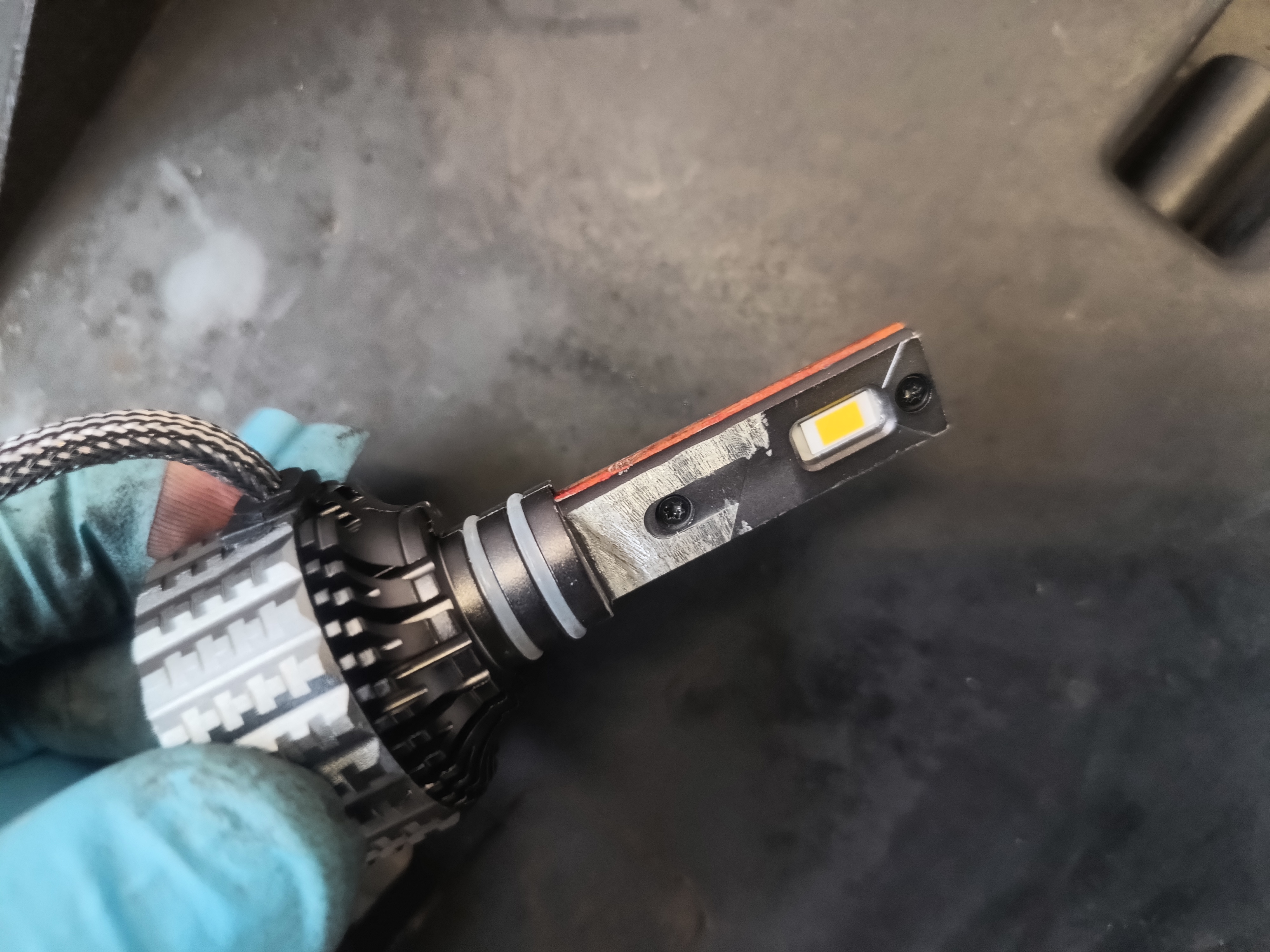Daarna een potje vloeken omdat de leds niet volledig in de projectors passen, wat opgelost kan worden door de leds met een frees te lijf te gaan.