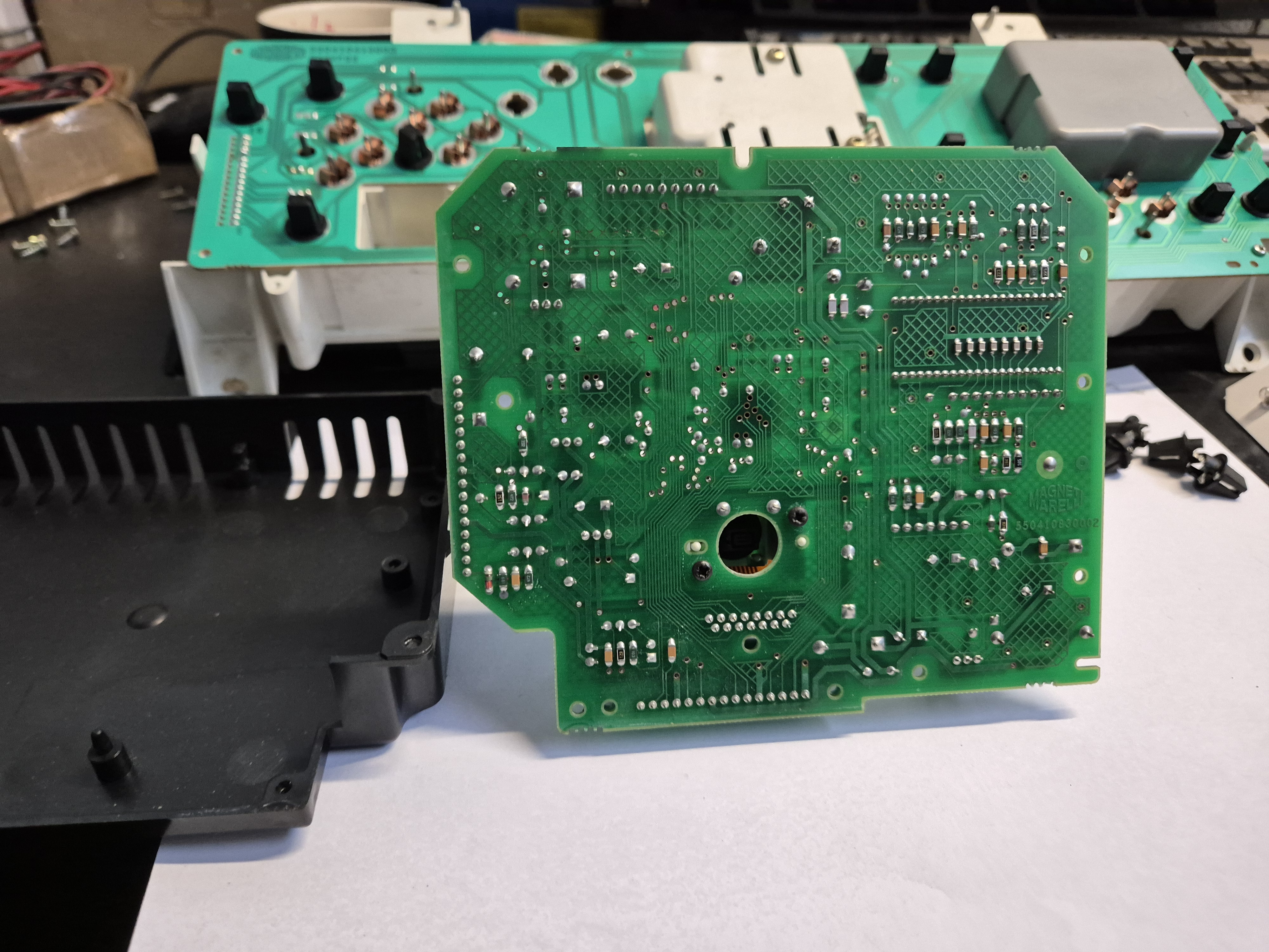 De dasboard verlichting zit onder vast met 2 plastik klipschroeven als deze verwijder zijn kan het display er uit getrokken worden uit de bovenst pennen deze zitten goed geklemd maar met een flinke ruk moet dat lukken.