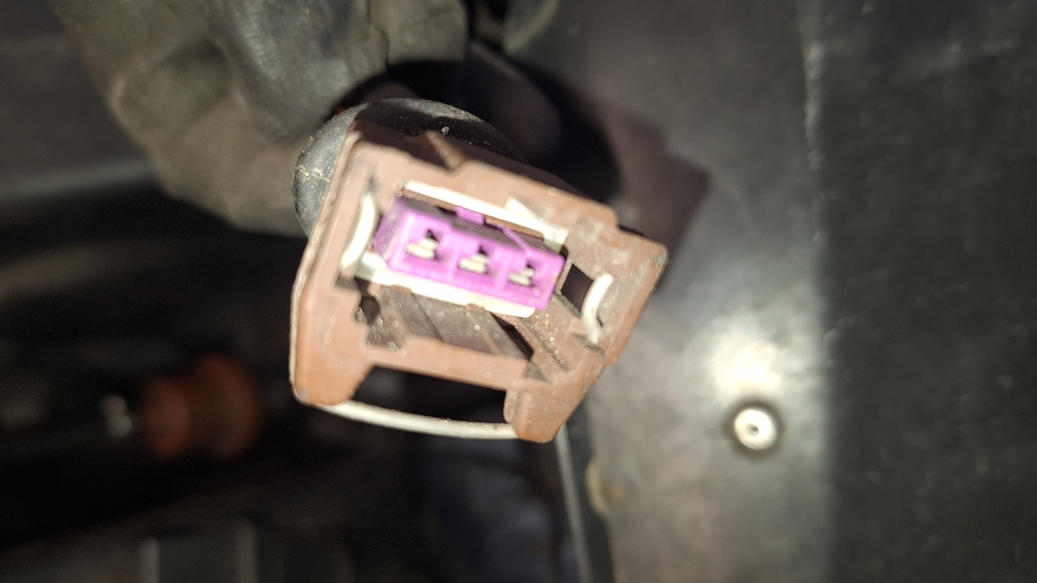 Die zwart/paarse stekker gewoon los in de ECU bak. Is voor iets met de automaat.