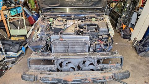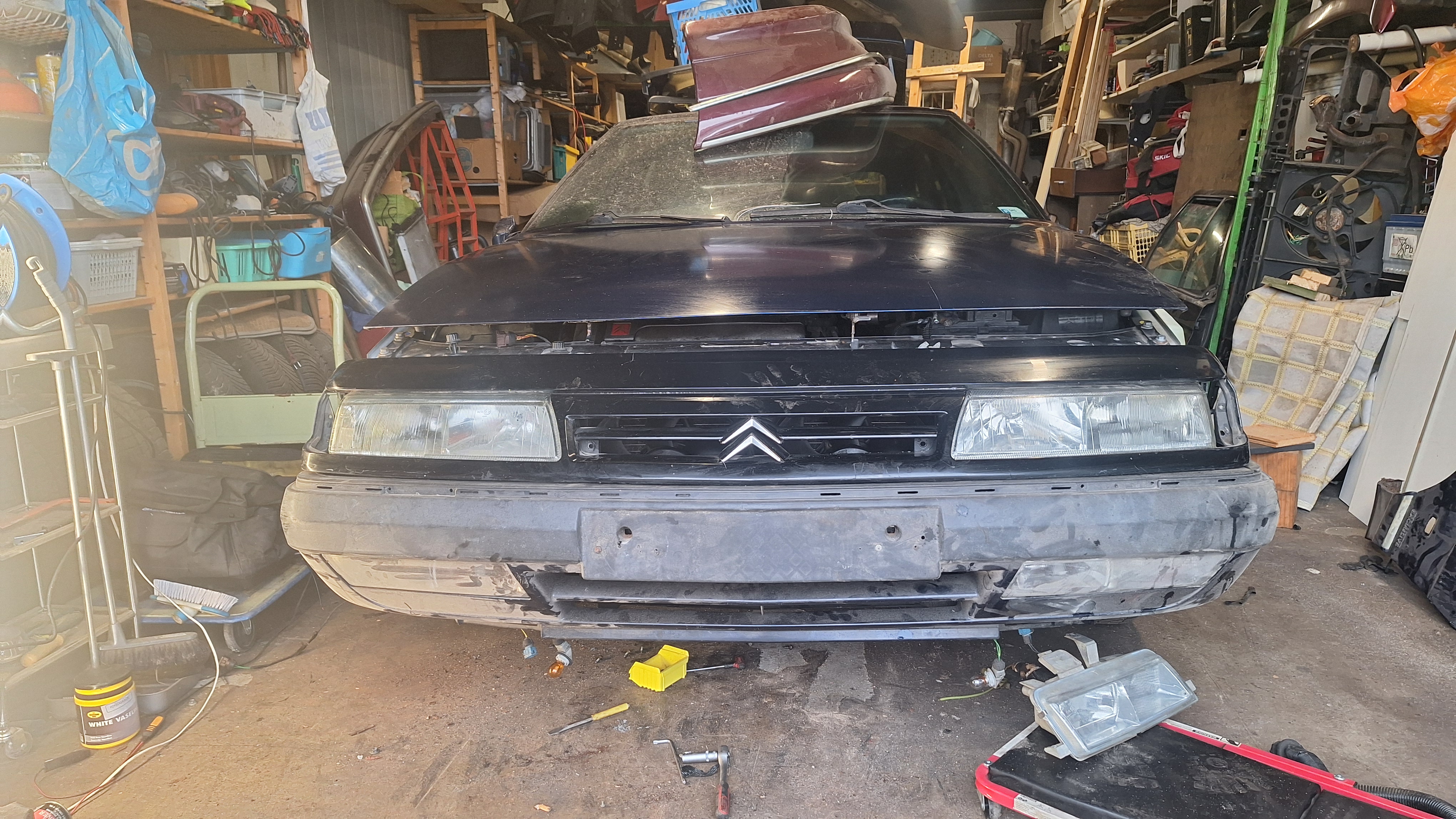 Even voor de vorm de onderbumper erop gezet, voorste spatbordsteunen zijn allebei weg zoals gebruikelijk.