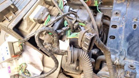 Die kabel die je los hebt liggen loopt over de onderzijde van het front. De bruine stekker moet voor de ECUbak z'n maatje vinden.