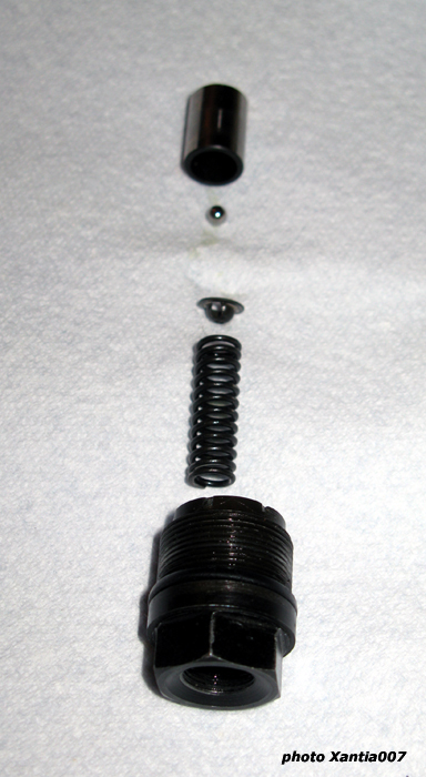 Die dop die je los hebt gehaald hebt, zit nog gewoon in elkaar zoals ie hoort. De veer met het cupje voor de kogel steekt nog in de plunjer die nnog gewoon in de pomp steekt.