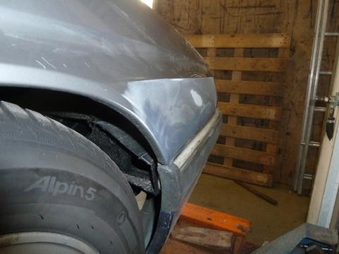 Dan nog het voorscherm aan de rechterzijde. Toen ik die uitkoos als vervanger dacht ik iets te hebben wat recht was zonder al te grote schade.